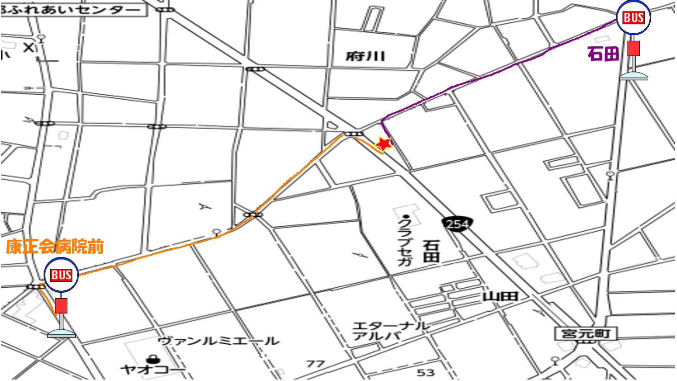 最寄り駅から当店近くまでバスが出ていますのでご案内します。